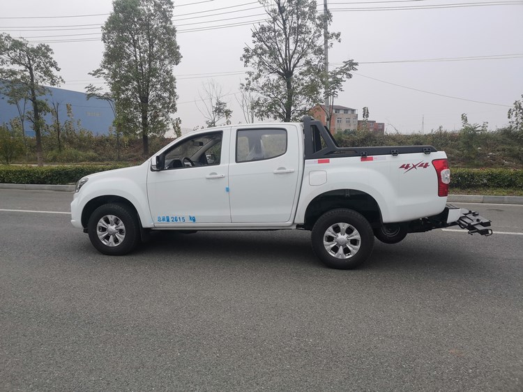 底盘配置:江西五十铃底盘,江西五十铃150马力发动机,轴距3380mm,柴油四驱,6档高低手动挡,多功能方向盘,中控显示屏,倒车影像,引擎盖液压撑杆,无差速锁,空调。